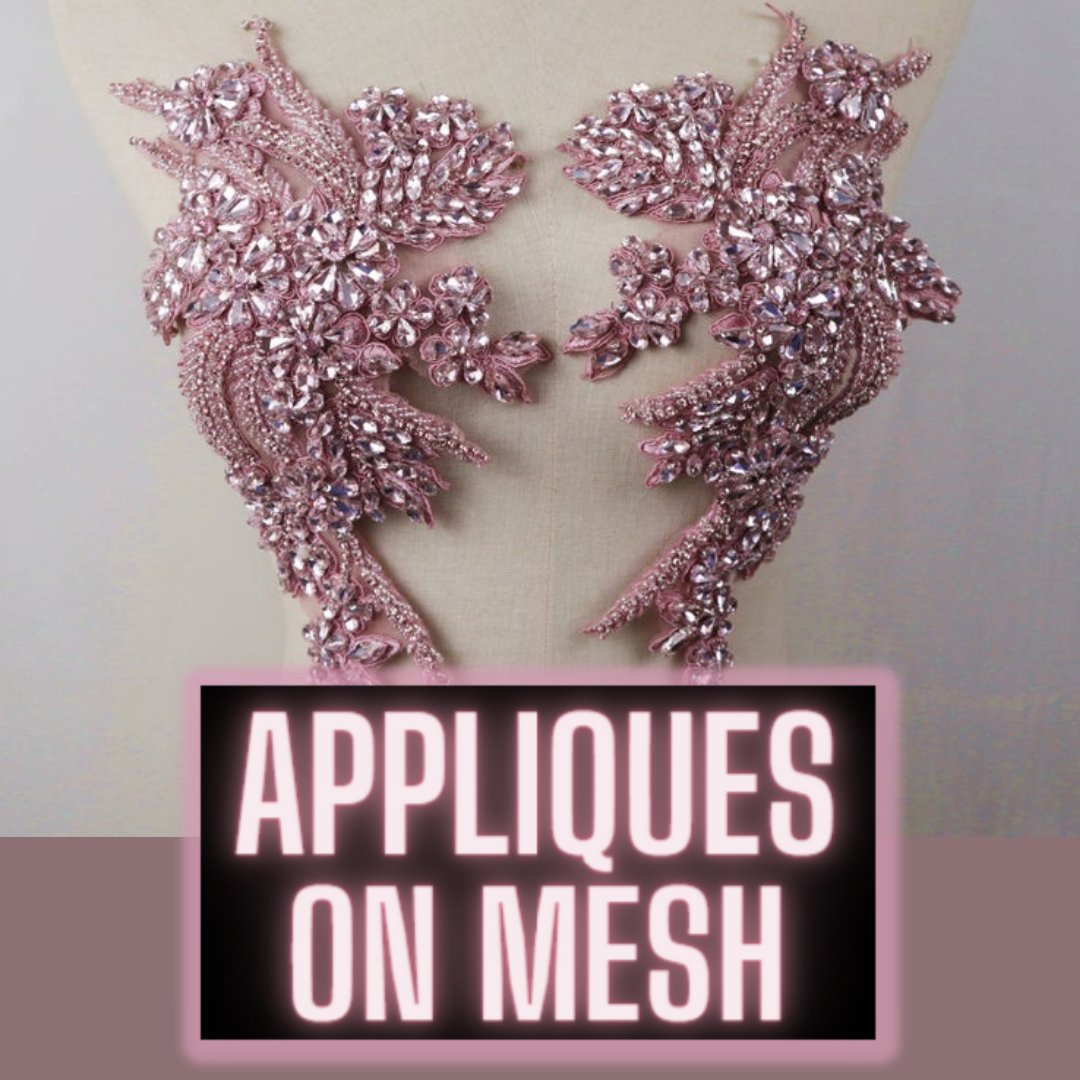 Elegant hand crafted rhinestone lace appliques made with high quality glass rhinestones...