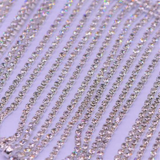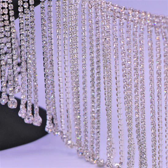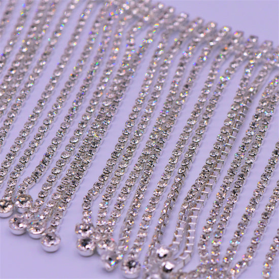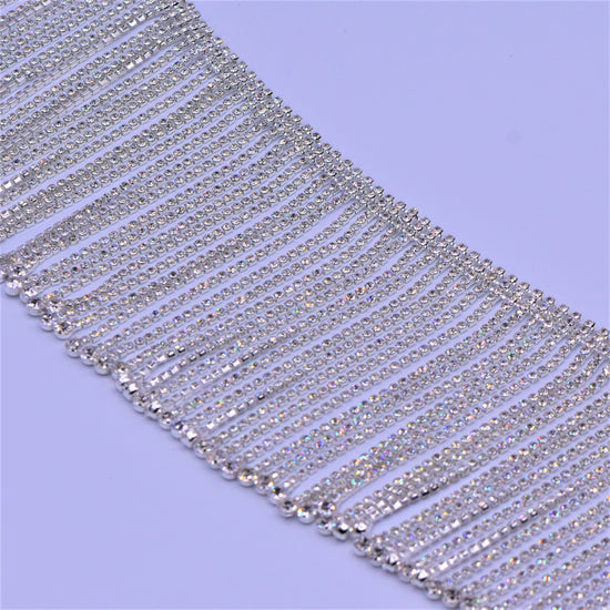 This rhinestone fringe is made of top quality rhinestones and is perfect for special occasions and DIY projects.