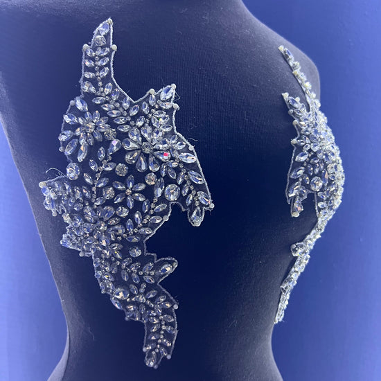 The Abdrea rhinestone applique is handmade with high-quality crystal glass rhinestones. The mesh base allows for easy sewing for DIY projects. The applique can also easily be cut into smaller segments, with the use of scissors, for your own customized design.