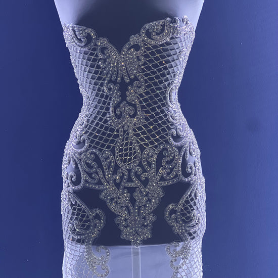 Beautiful rhinestone bodice applique. This full-body applique is made with high-quality rhinestones in a breathtaking design.