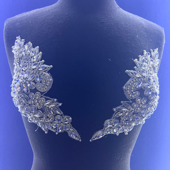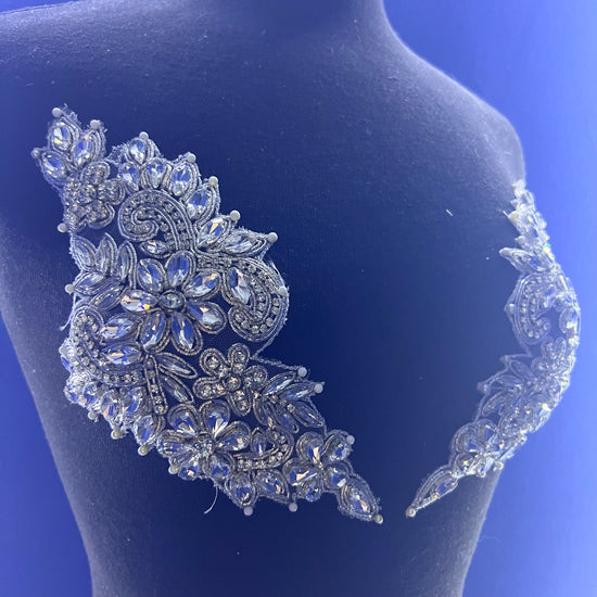 The Amanda rhinestone applique is handmade with high-quality crystal glass rhinestones. The mesh base allows for easy sewing for DIY projects. The applique can also easily be cut into smaller segments, with the use of scissors, for your own customized design.
