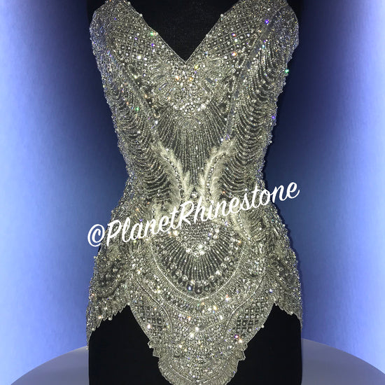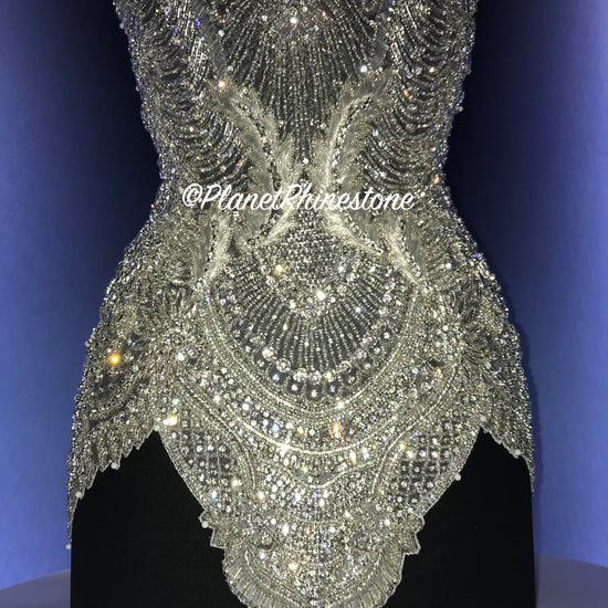 This beautiful applique is handmade with top-quality Rhinestone beads. The applique is attached to a mesh backing to make it super easy for DIY projects.