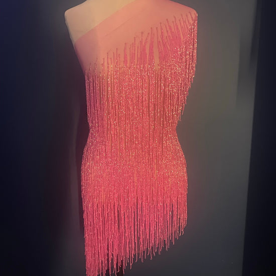 Hand-crafted beaded fringe panel.