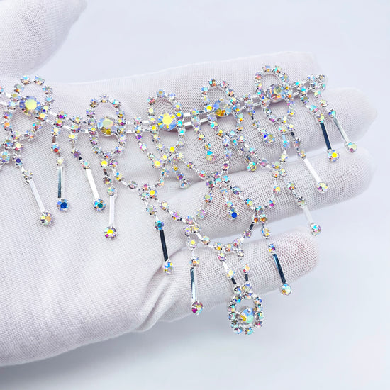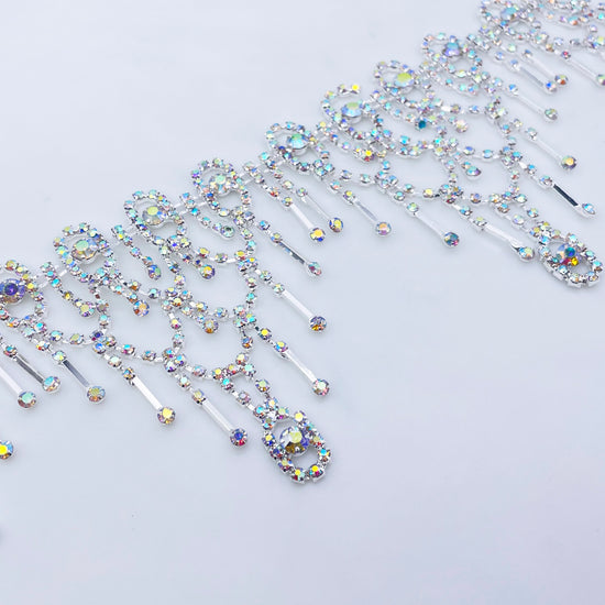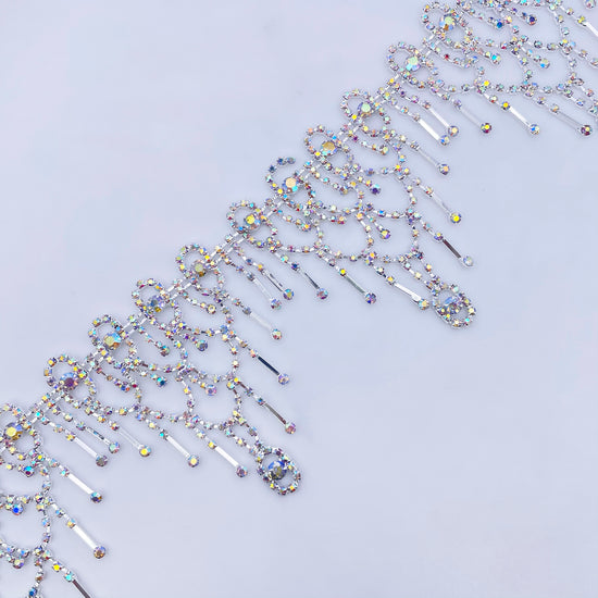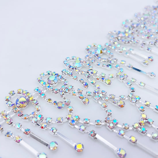 This rhinestone fringe is made of top-quality rhinestones and is perfect for special occasions and DIY projects.