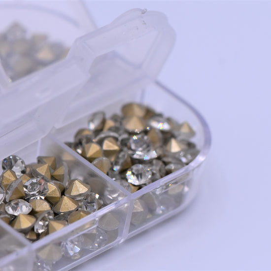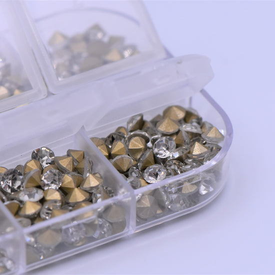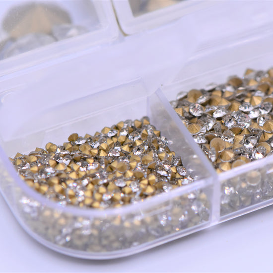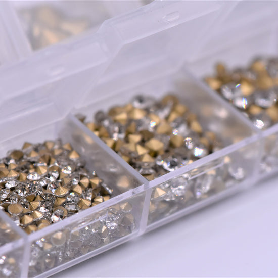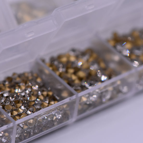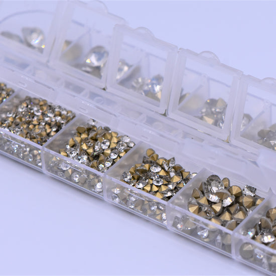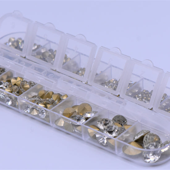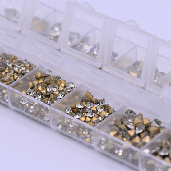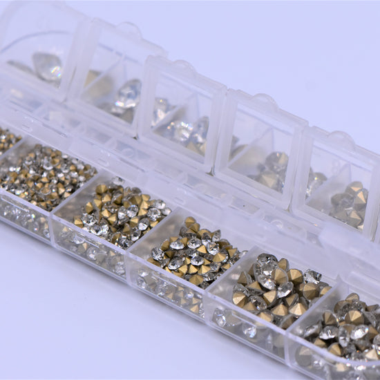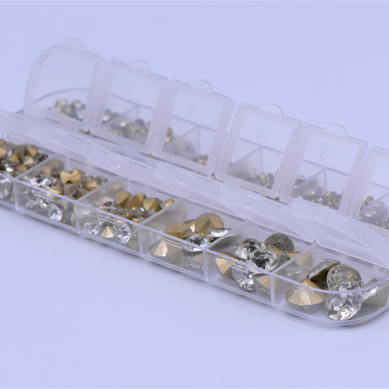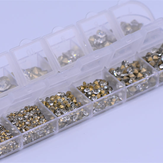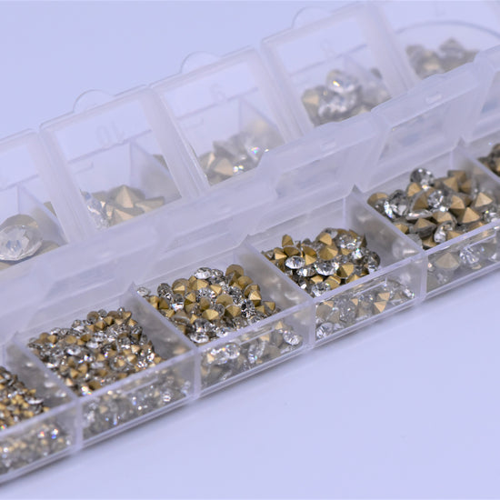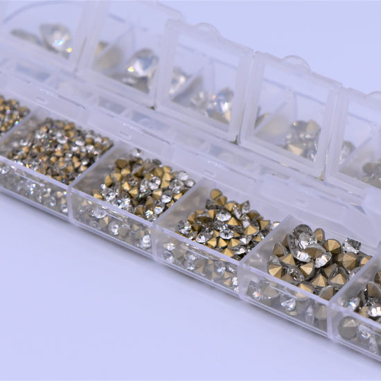Can't decide what's the right size? Purchase this box and receive 12 different sizes of foiled pointed back crystals.