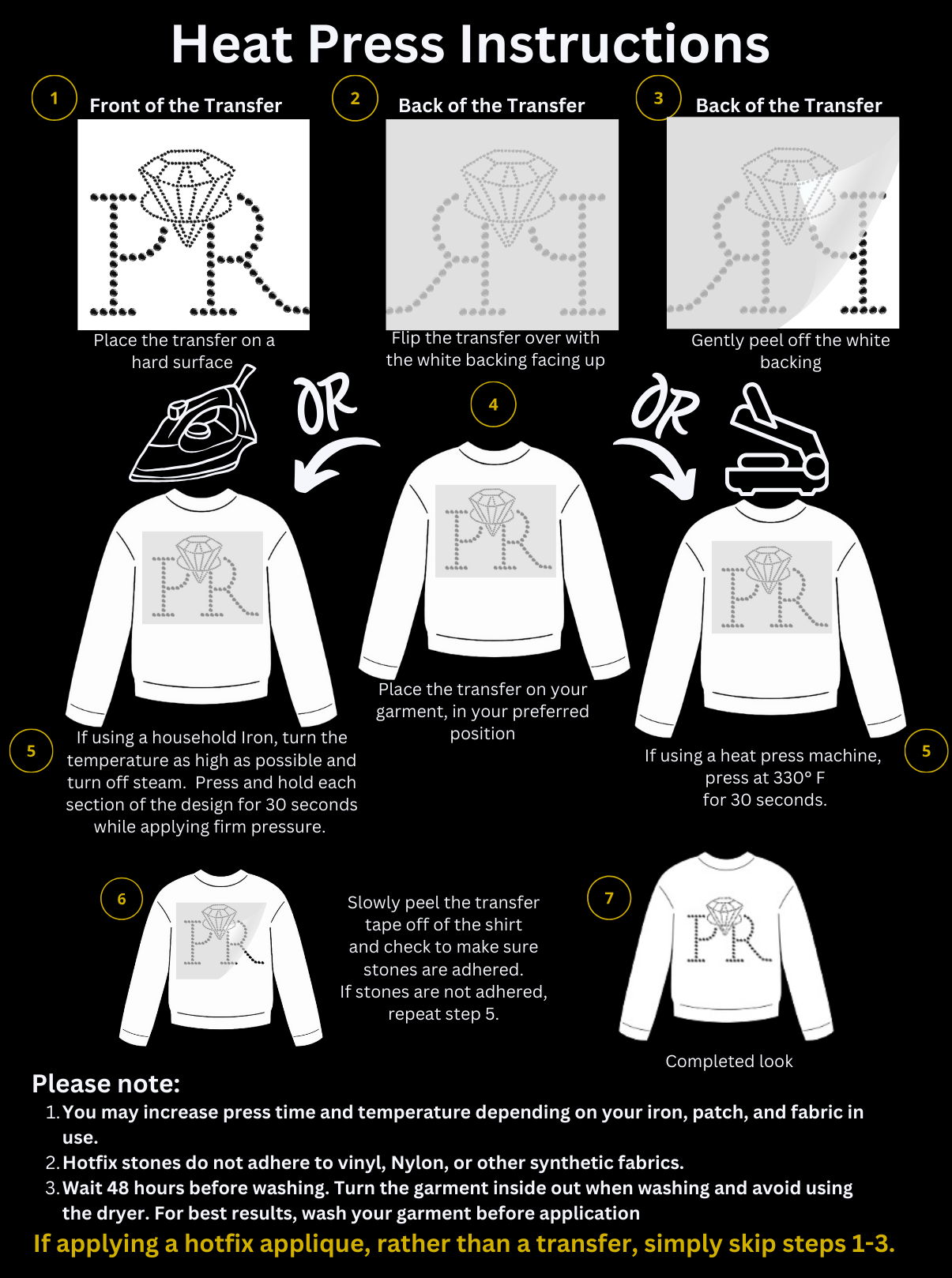 Applying Method: Heat press (330 F for 20 Seconds)