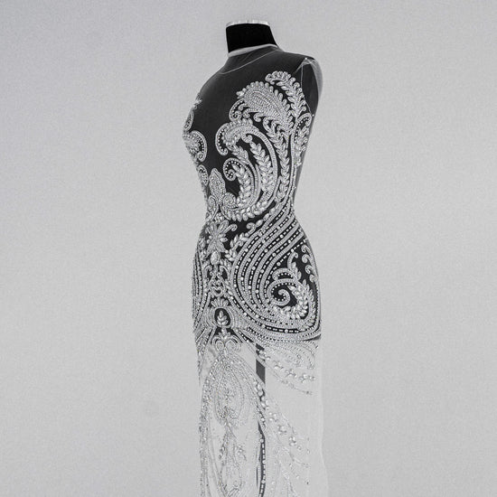 Beautiful beaded rhinestone bodice applique. This best-selling full-body applique is made with high-quality rhinestones in a gorgeous and lush design.