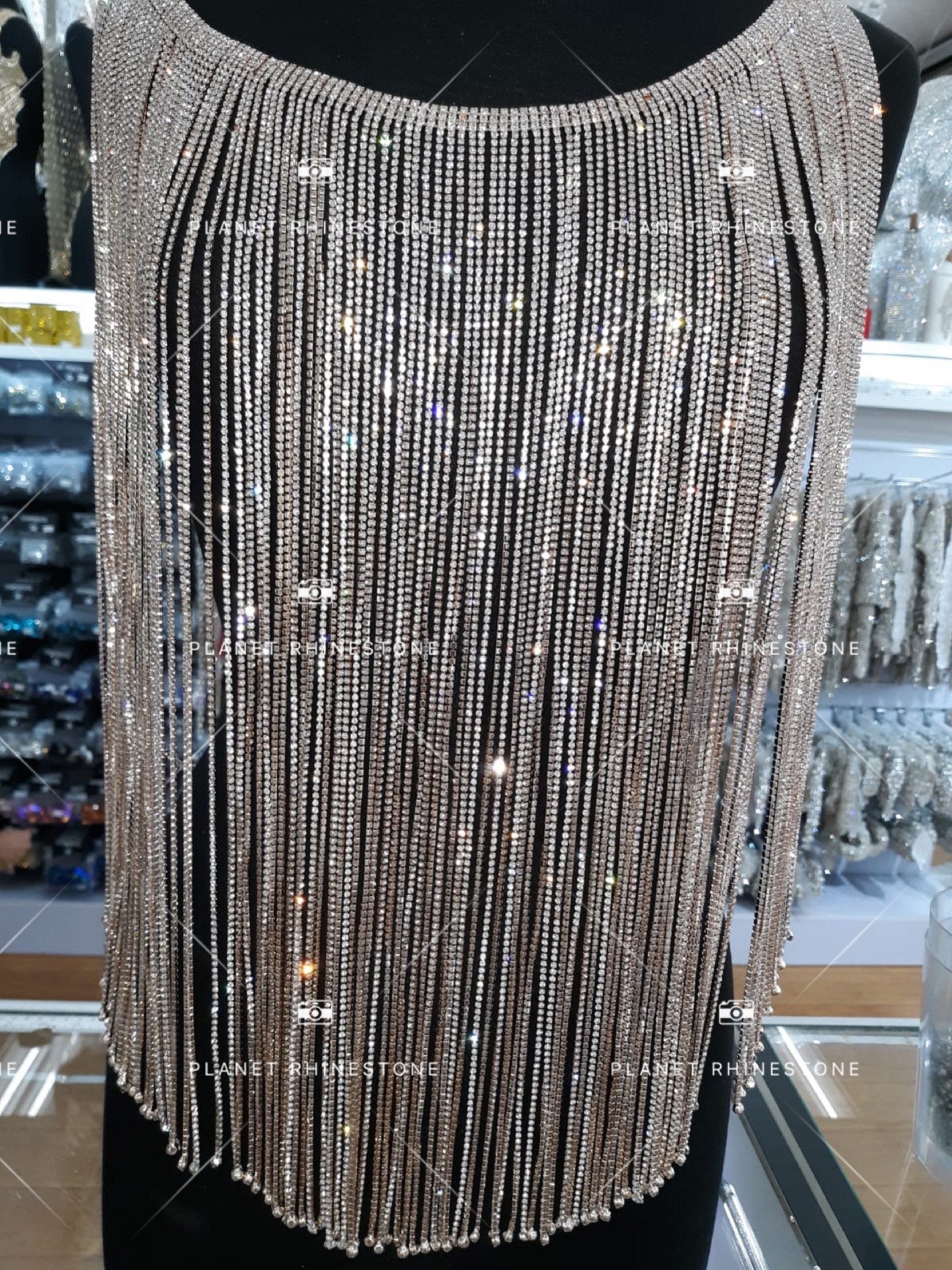 This rhinestone fringe is made of top-quality glass rhinestones and is perfect for special occasions and DIY projects.