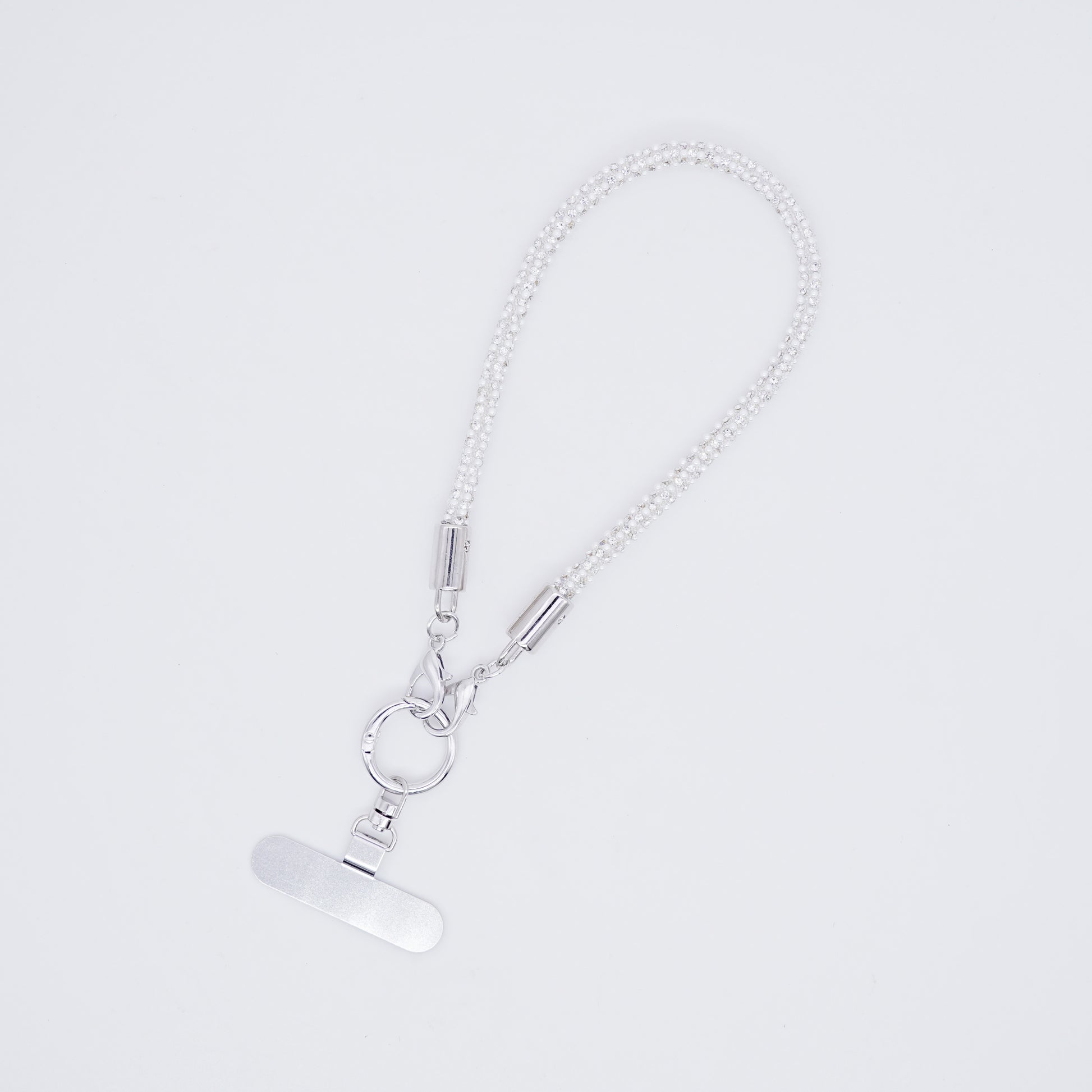 This Pearl & Rhinestone Wrist Strap is designed to be a versatile, everyday glam accessory. Featuring a closed-loop design with shimmering rhinestones and pearl detailing, it can be used as a phone strap, key wristlet, bag charm, zipper pull, or accessory chain.