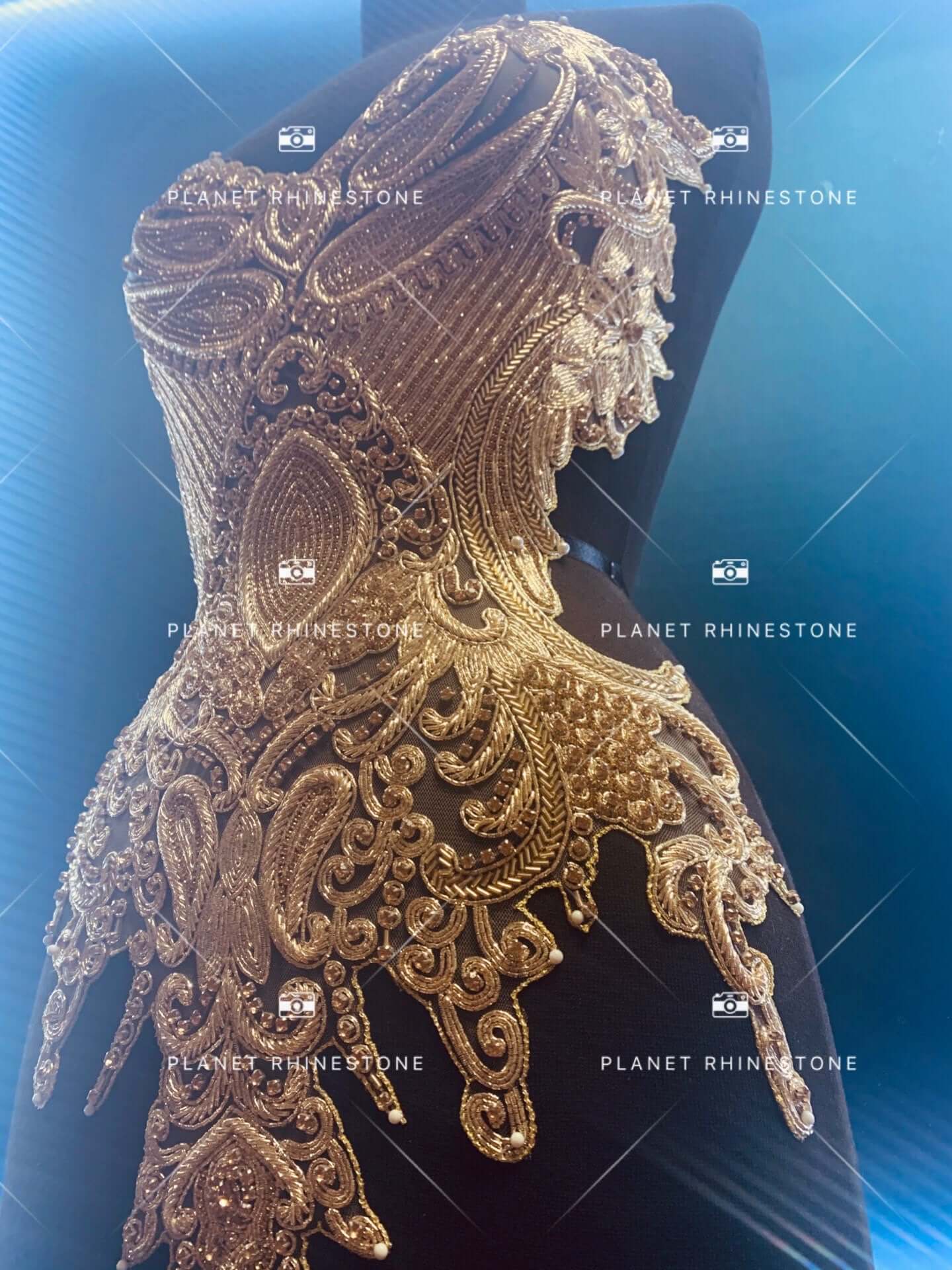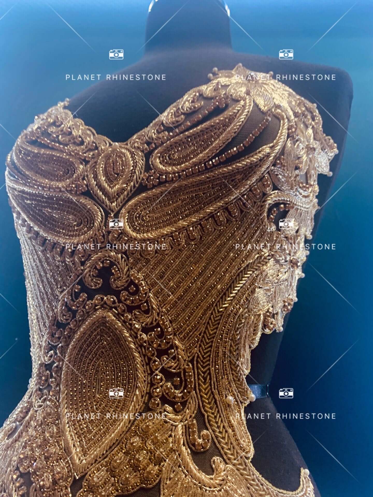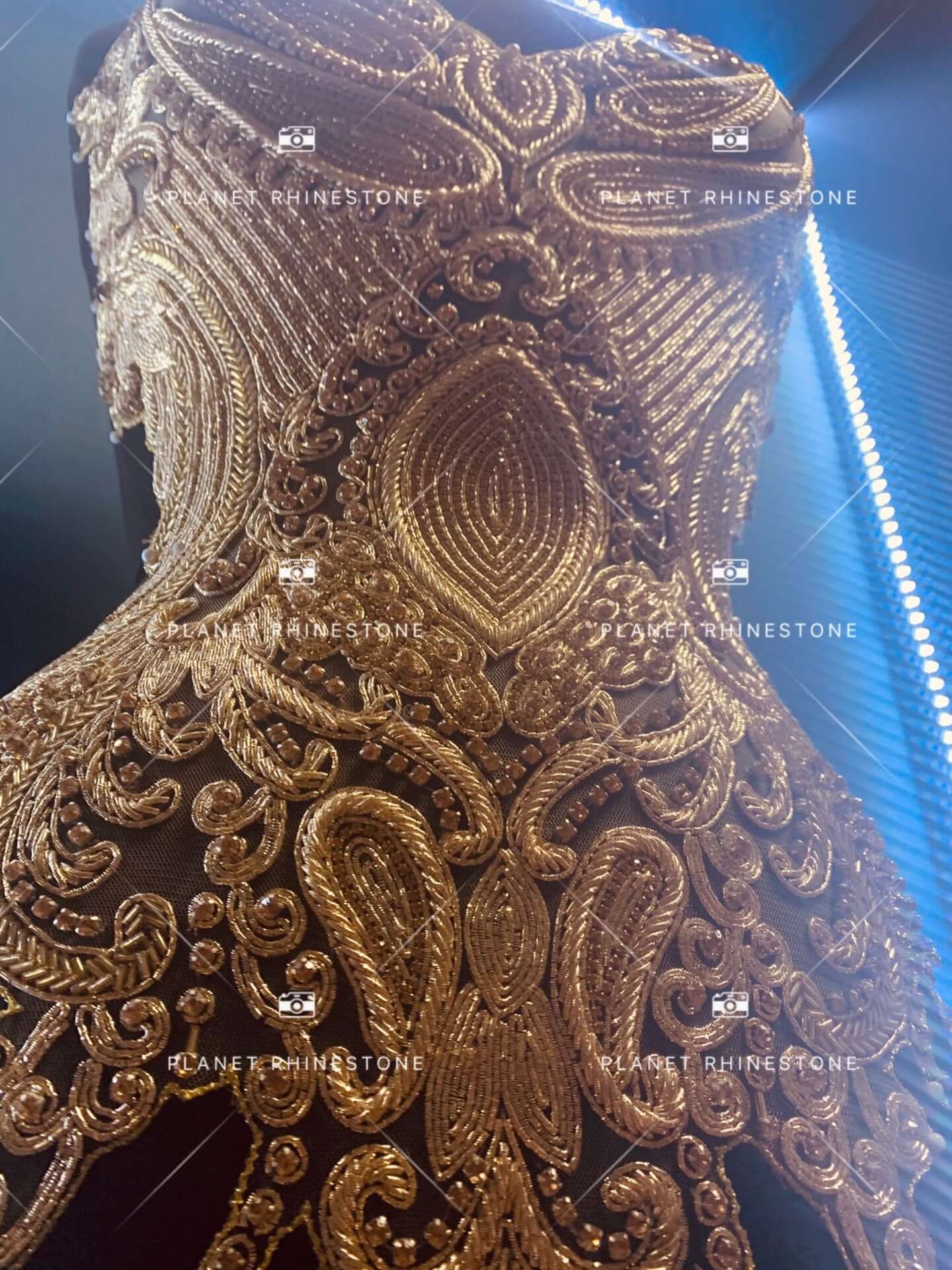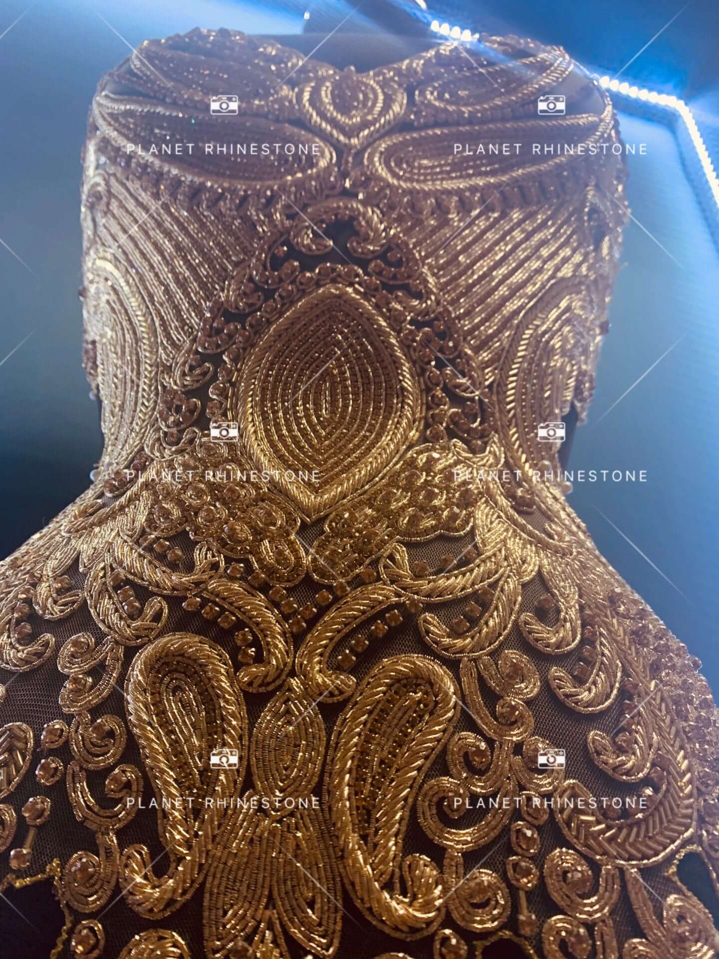 The picture does not do this, bodice justice! The color matched the fabric beautifully and my prom client looked amazing!!!!! Make sure to check for the occasional loose stone as a result of fabric manipulation and placement.