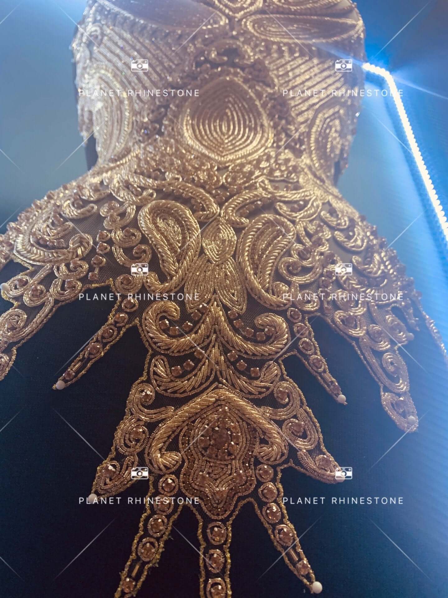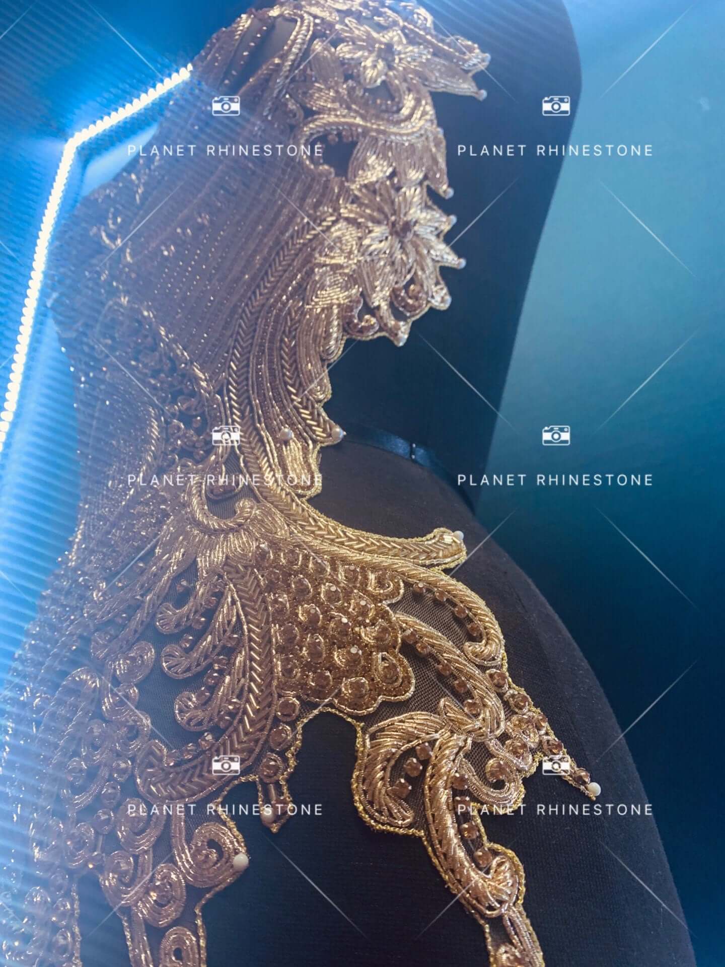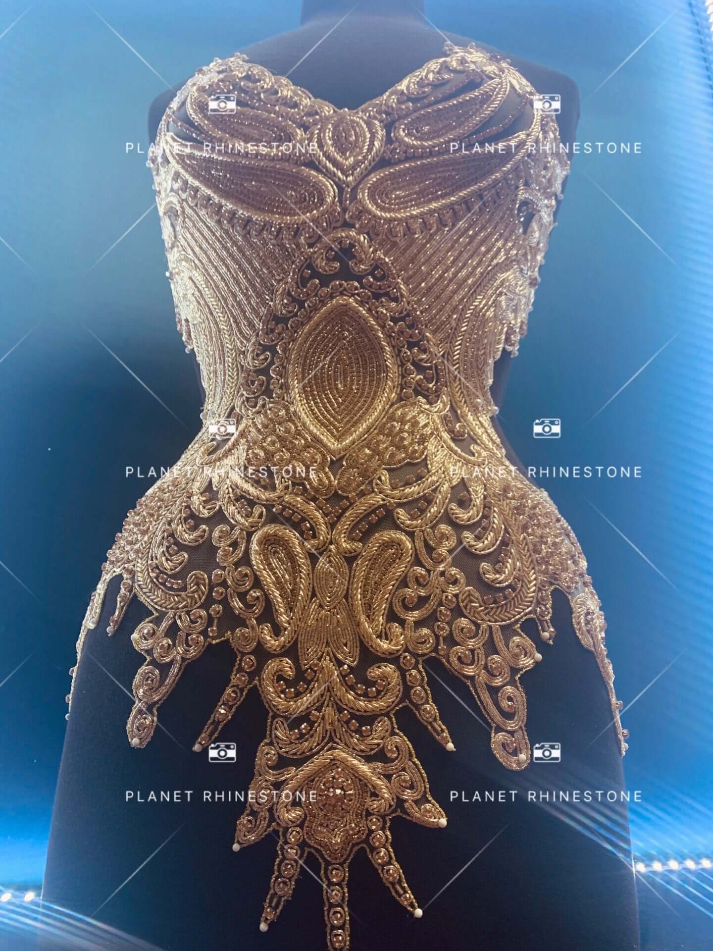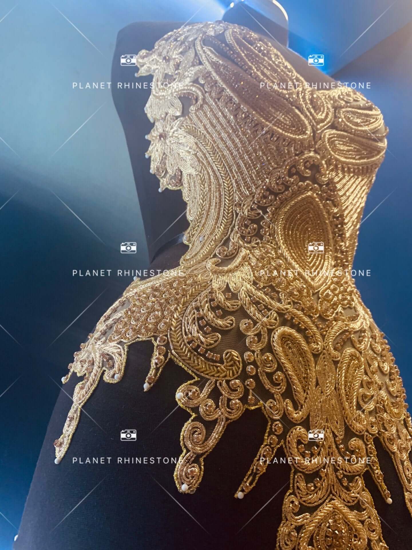 The picture does not do this, bodice justice! The color matched the fabric beautifully and my prom client looked amazing!!!!! Make sure to check for the occasional loose stone as a result of fabric manipulation and placement.