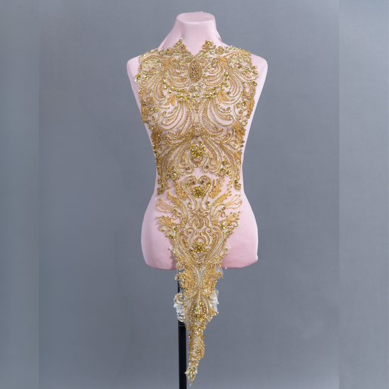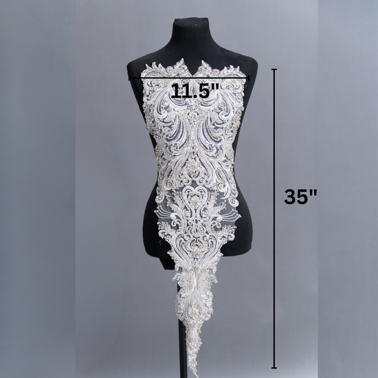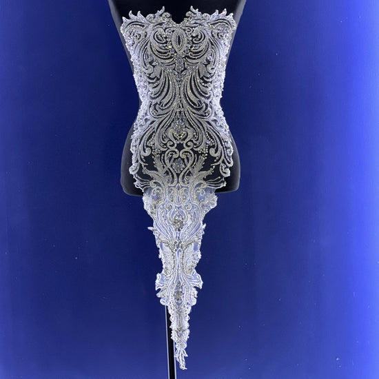 Beautiful handmade rhinestone bodice applique made with high-quality rhinestones, beads, and lace.