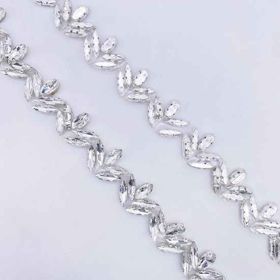 Made of High-quality Glass rhinestones. This stunning trim can be used for sashes, belts, straps, glasses, etc.