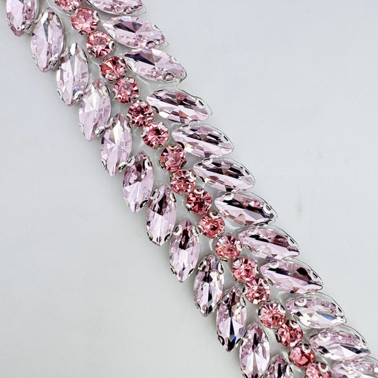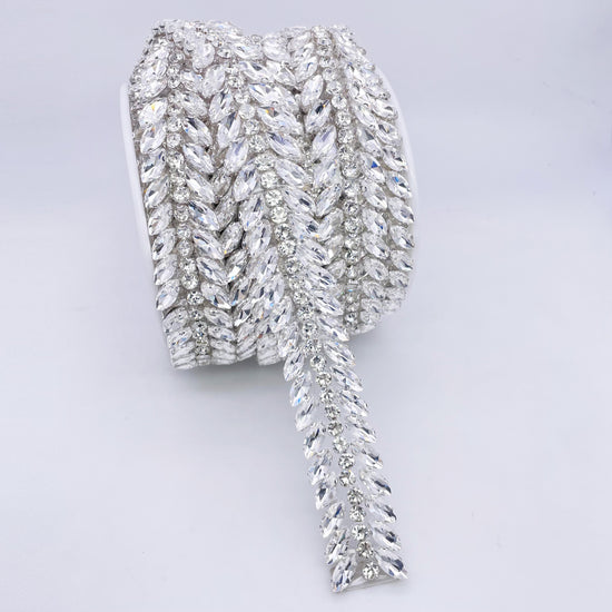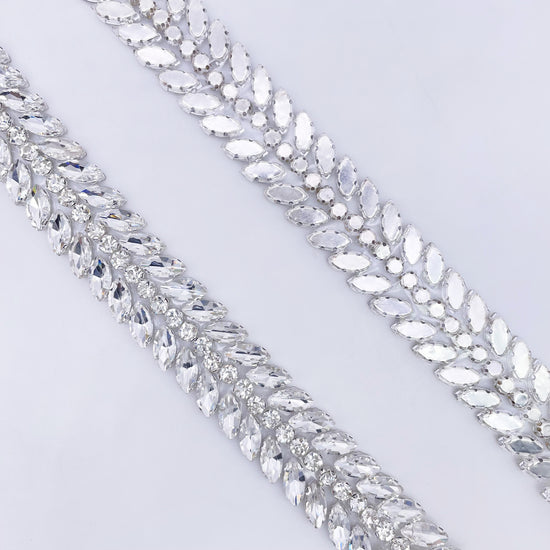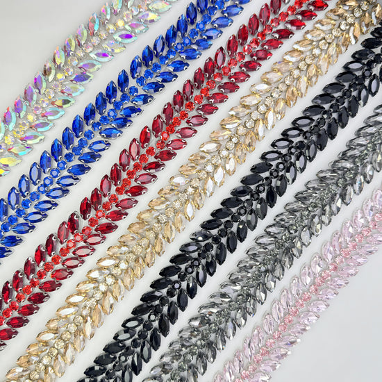 Made of High-quality Glass rhinestones. This stunning trim can be used for sashes, belts, straps, glasses, etc.