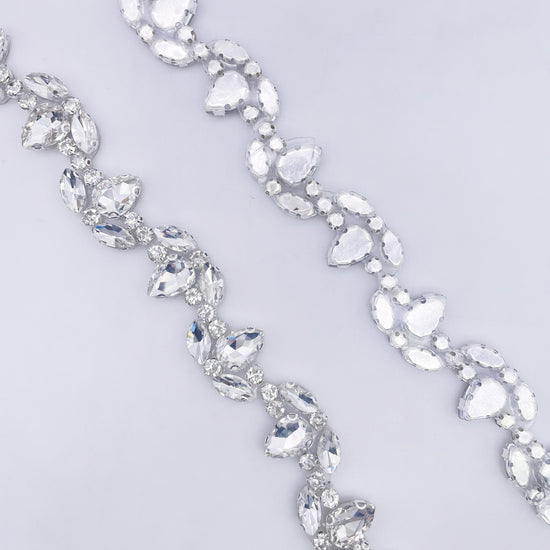 Made of High-quality Glass rhinestones. This stunning trim can be used for sashes, belts, straps, glasses, etc.