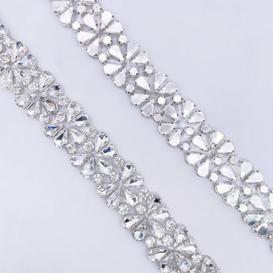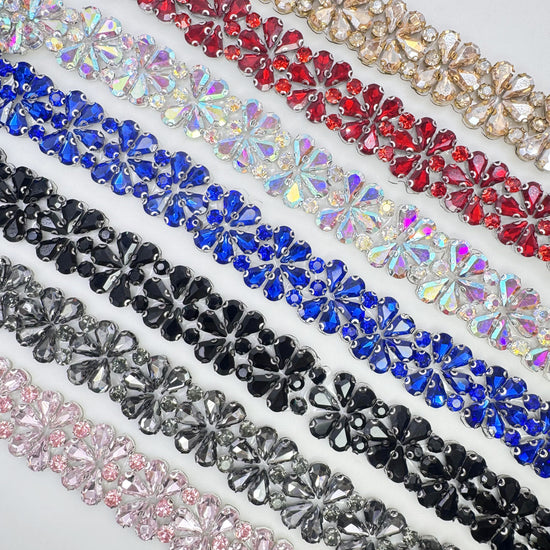 Made of High-quality Glass rhinestones. This stunning trim can be used for sashes, belts, straps, glasses, etc.