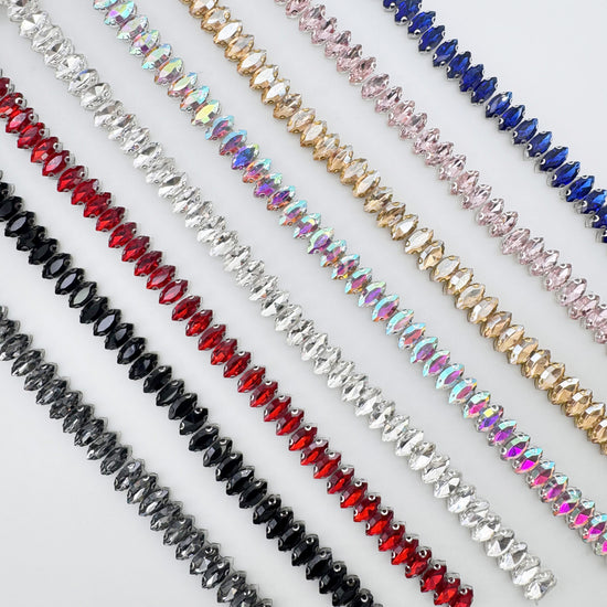 Made of High-quality Glass rhinestones. This stunning trim can be used for sashes, belts, straps, glasses, etc.