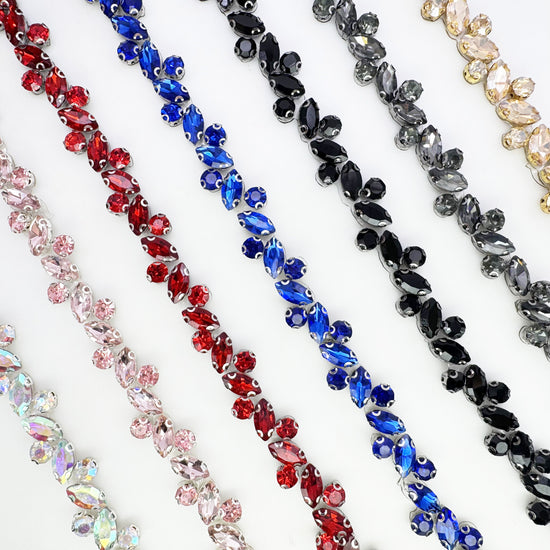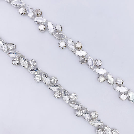 Made of High-quality Glass rhinestones. This stunning trim can be used for sashes, belts, straps, glasses, etc.