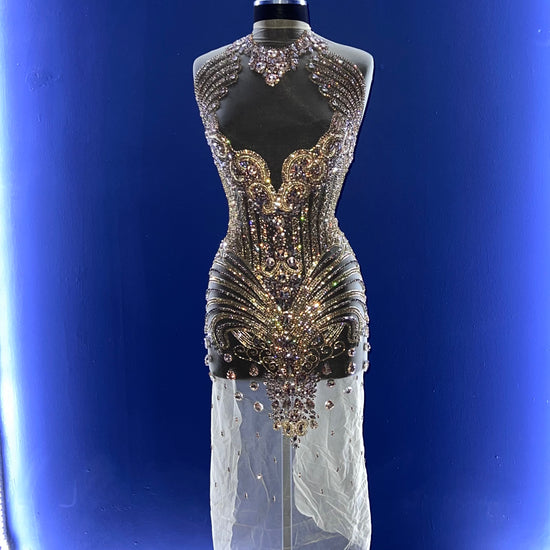 Beautiful rhinestone bodice applique. This full-body applique is made with high-quality rhinestones in a breathtaking design.