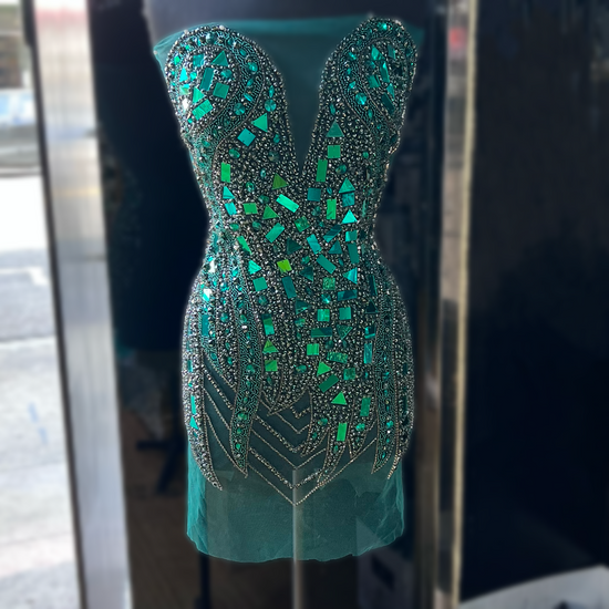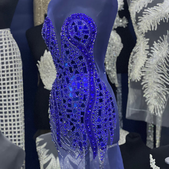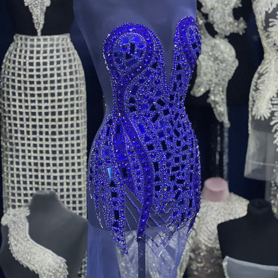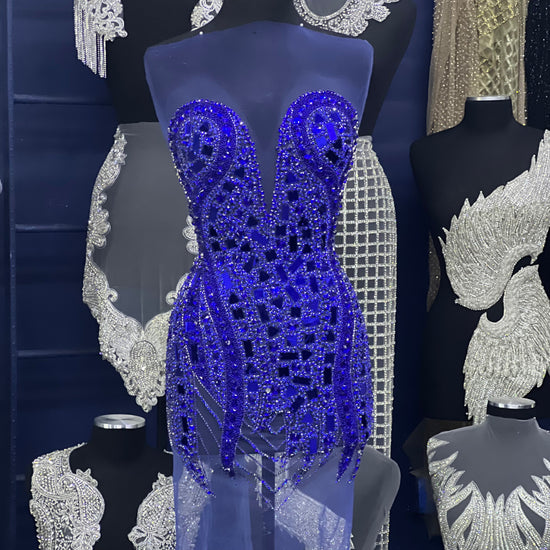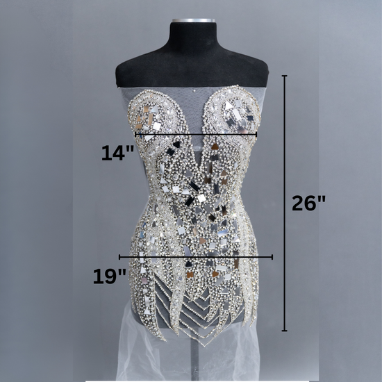 The JoJo bodice is made with high-quality glass rhinestones and acrylic mirror gems.