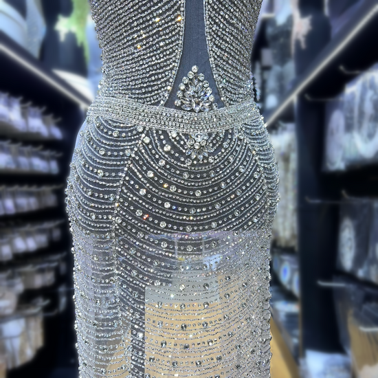 Rhinestone bodice applique made with glass rhinestones and beads.