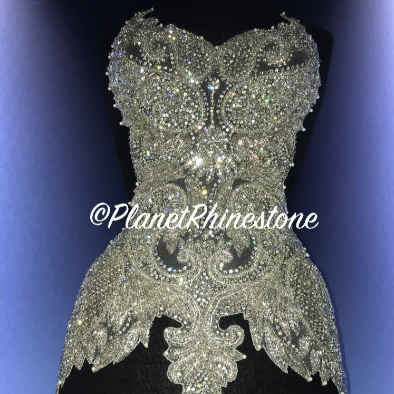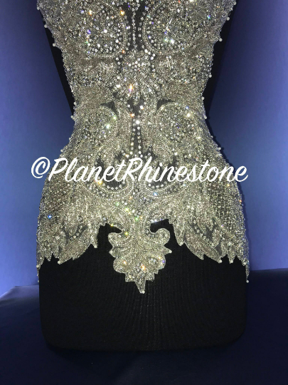 Beautiful beaded rhinestone bodice applique. This rhinestone applique is made with high-quality rhinestones in a gorgeous and lush design.