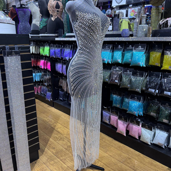 Rhinestone bodice applique made with glass rhinestones and beads.