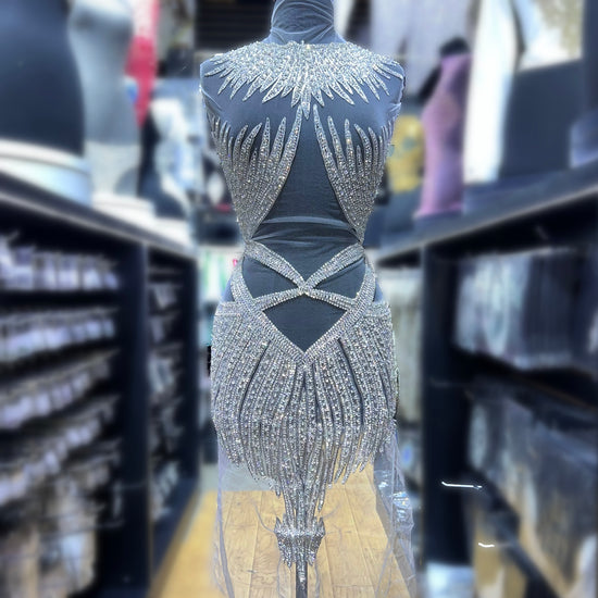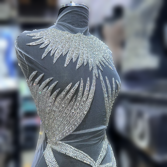 Rhinestone bodice applique made with glass rhinestones and beads.