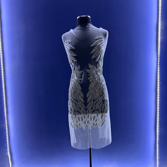 This one-piece bodice is attached to a nude mesh backing for easy use in DIY projects. Perfect for use on custom prom dresses, wedding and bridal dresses, formal dress occasions, and more.
