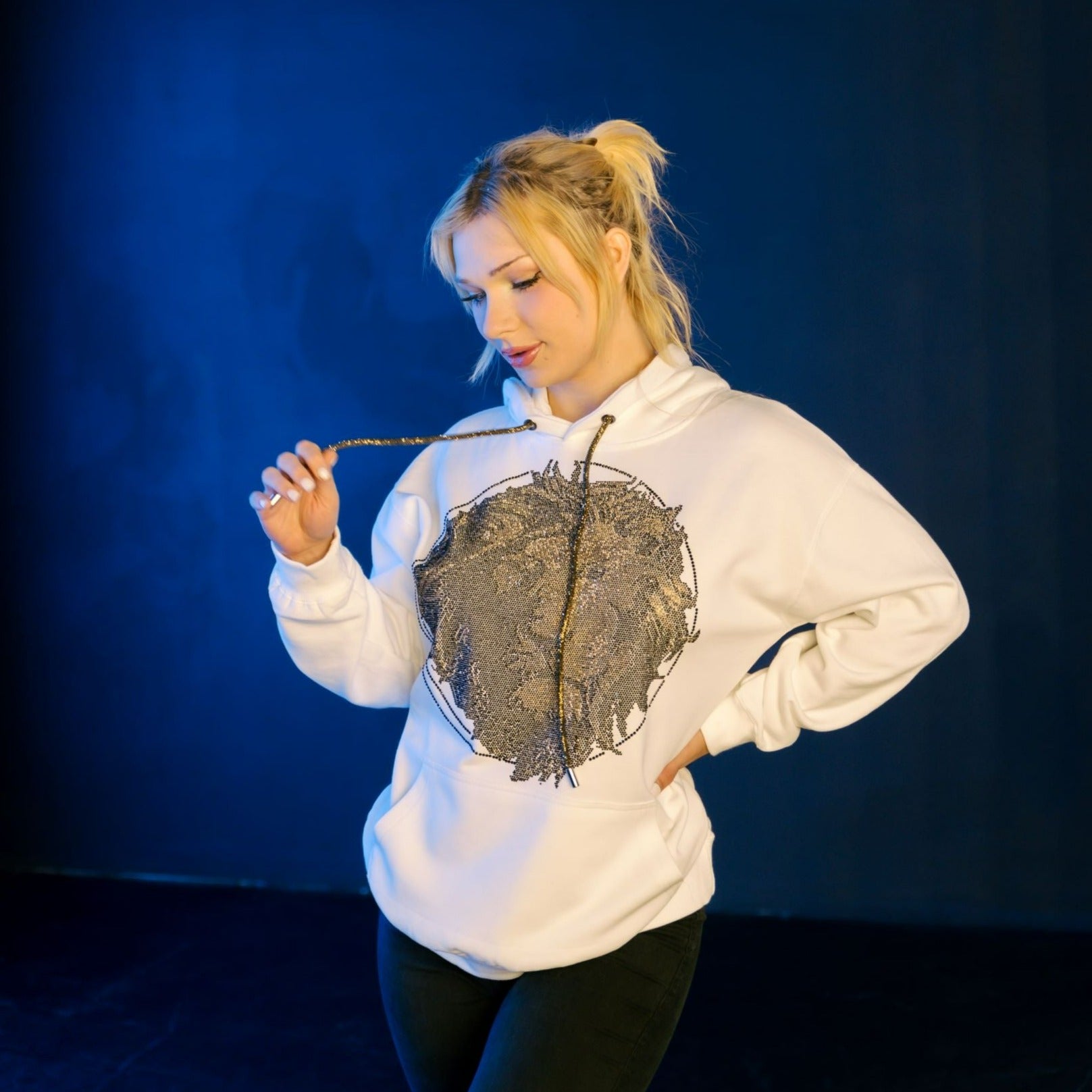 PRODUCT DETAILS: Our unisex lion Hoodie features a large lion head design and a rhinestone hoodie drawstring.