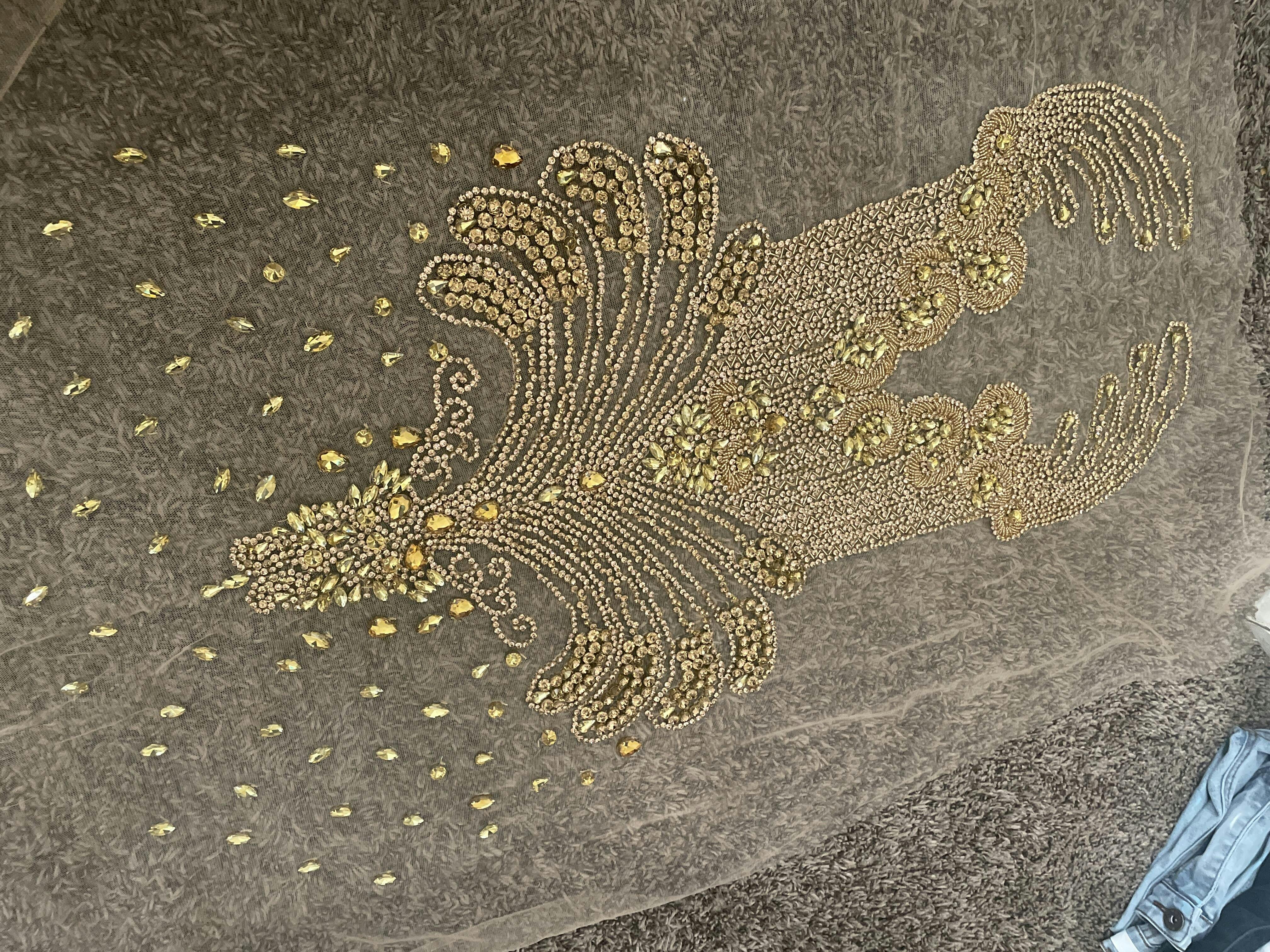 Rhinestone bodice applique made with glass rhinestones and beads.