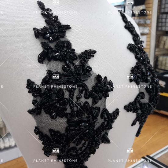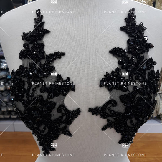 This beautiful applique is handmade with top-quality glass rhinestones and beads. The lace base allows for easy sewing for DIY projects. The applique can also easily be cut into smaller segments, with the use of scissors, for your own customized design.