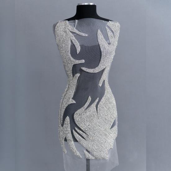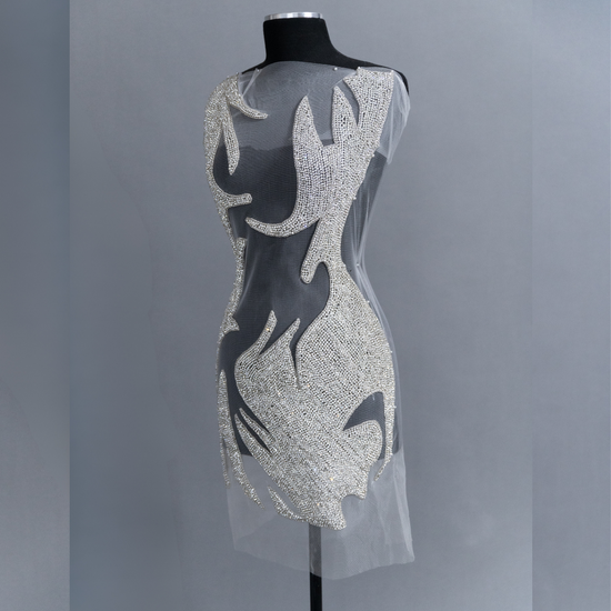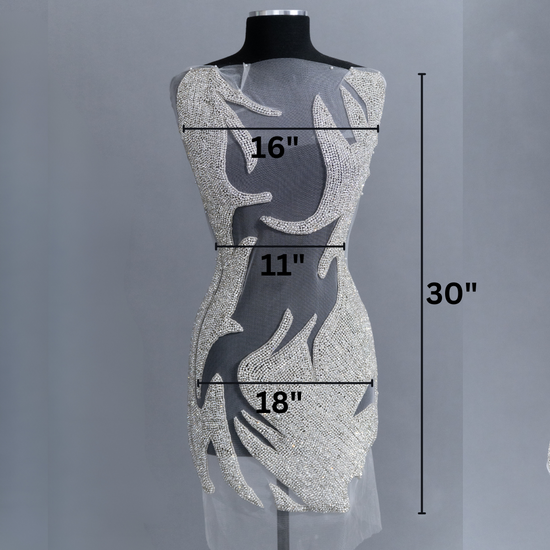 Rhinestone bodice applique made with glass rhinestones and beads.