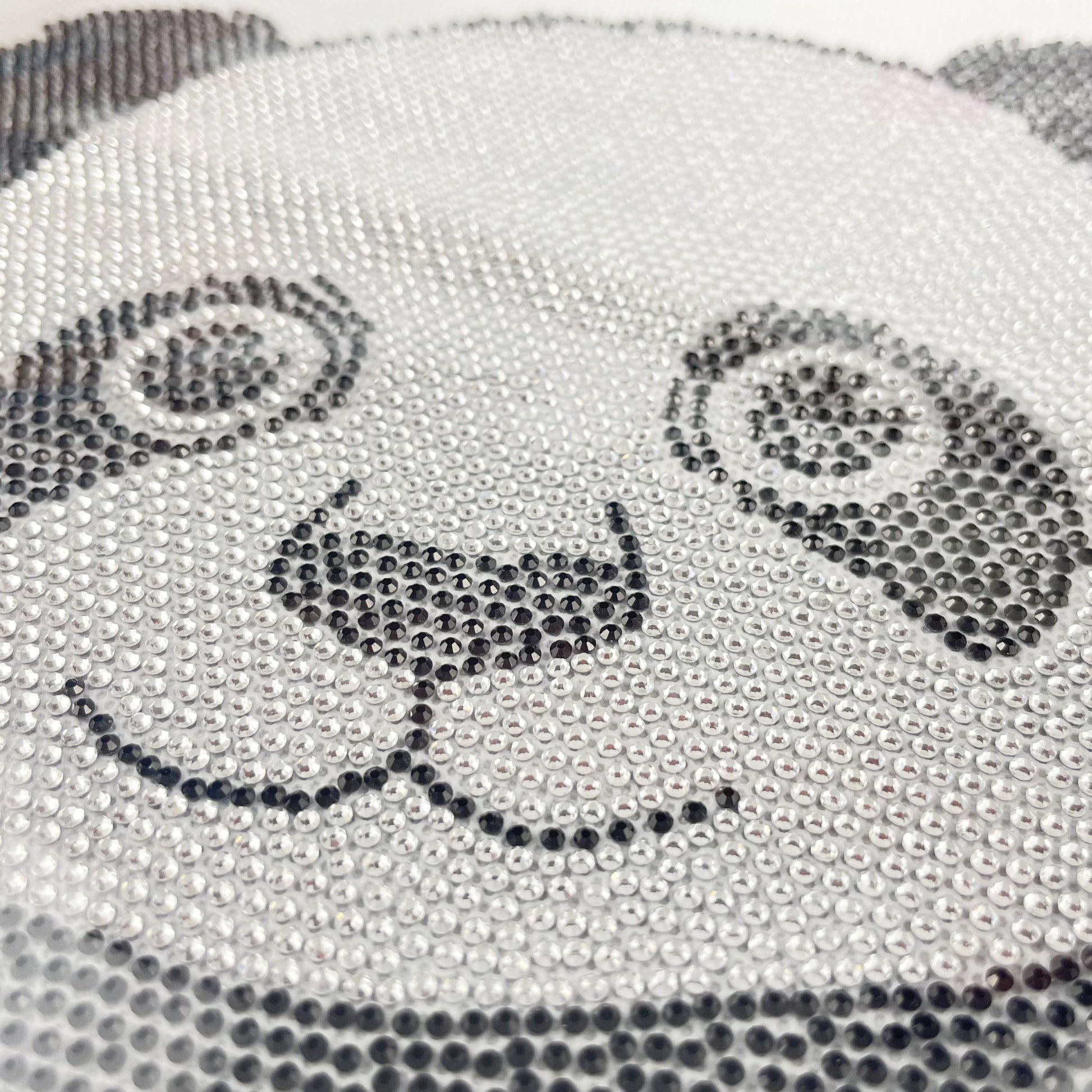 K. Mary (Portland, US) This rhinestone panda is amazing. Lots of cute detail and the stones are quality glass. The transfer is really big. I put it on the back of a Western button-down shirt. The panda goes from between the bottoms of my shoulder-blades all the way to the tops of my hips. Drama!
