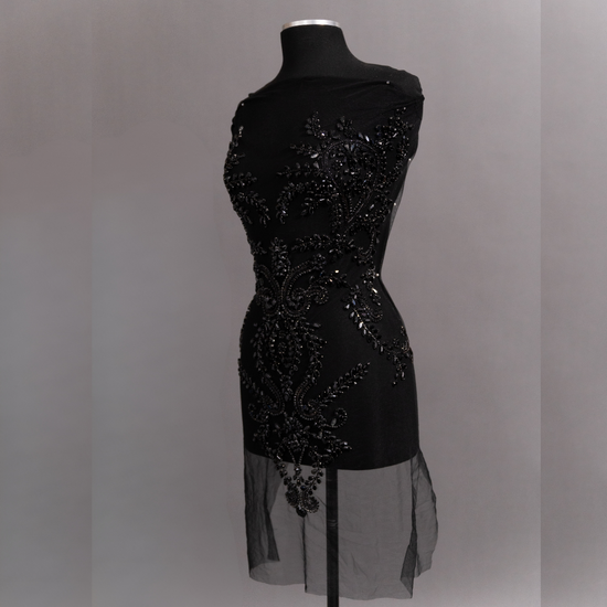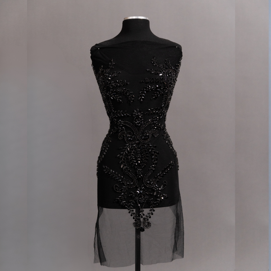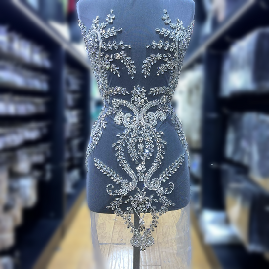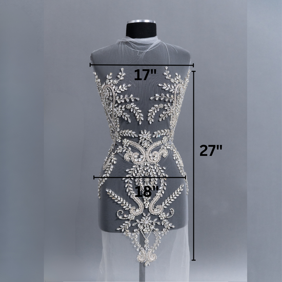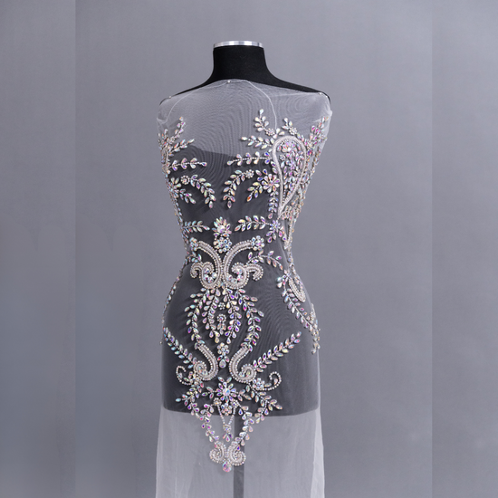 Rhinestone bodice applique made with glass rhinestones and beads.