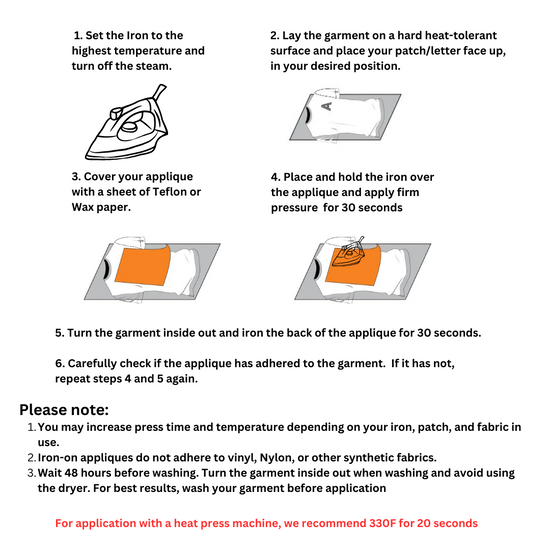 - Applying Method: Iron on, Sew on, Glue on
