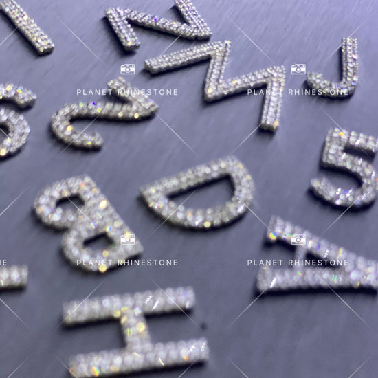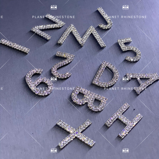 Easy-attach rhinestone letters, made with high-quality crystal rhinestones. Perfect for personalized projects and custom decals. Use on jackets, hats, masks, hairpins, belts, wedding decor, hairbands, and more.