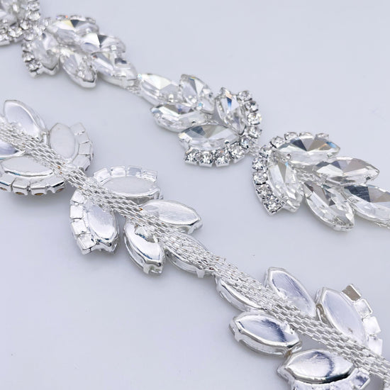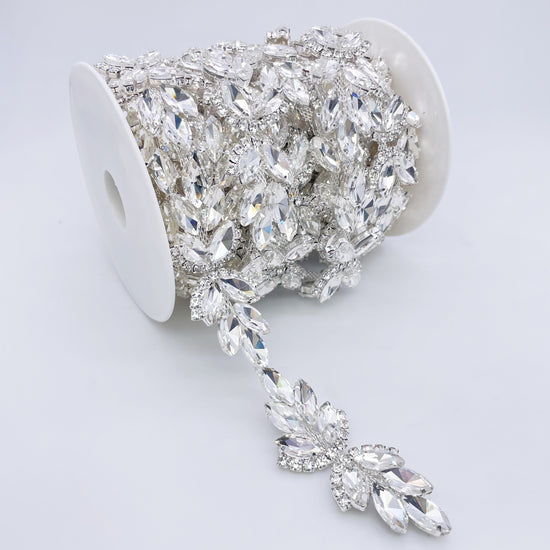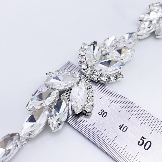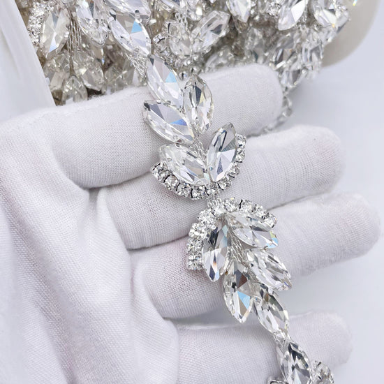 Made of High-quality Glass rhinestones. This stunning trim can be used for sashes, belts, straps, glasses, etc.