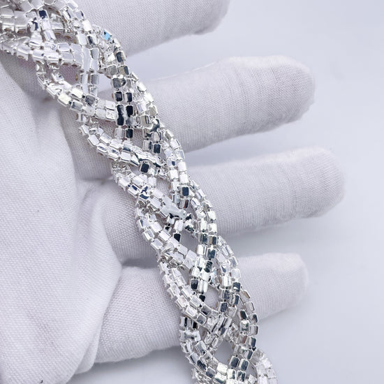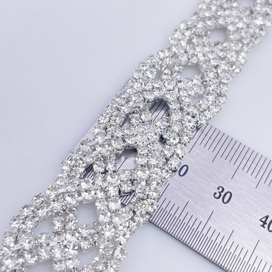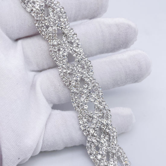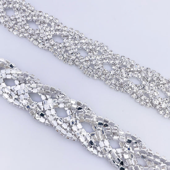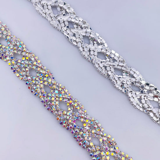 Made of High-quality Glass rhinestones. This stunning trim can be used for sashes, belts, straps, glasses, etc.