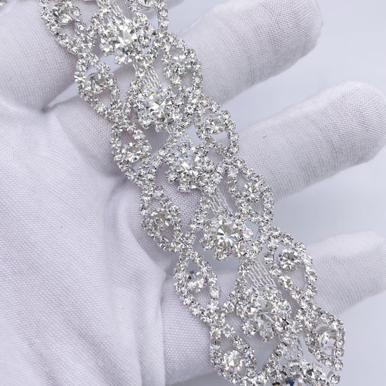 Made of High-quality Glass rhinestones. This stunning trim can be used for sashes, belts, straps, glasses, etc.
