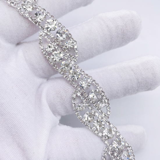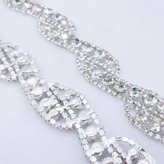 Made of High-quality Glass rhinestones. This stunning trim can be used for sashes, belts, straps, glasses, etc.