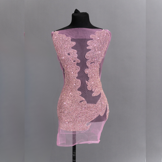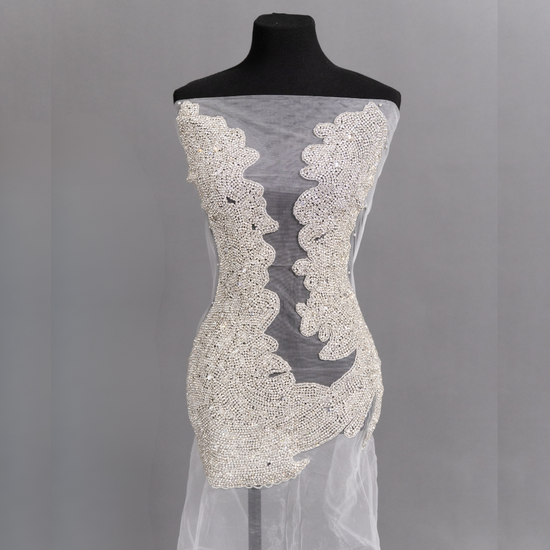 Rhinestone bodice applique made with glass rhinestones and beads.