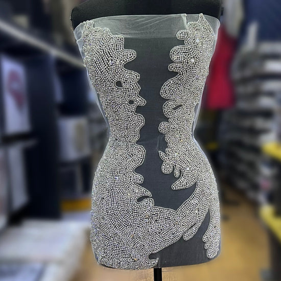 Rhinestone bodice applique made with glass rhinestones and beads.
