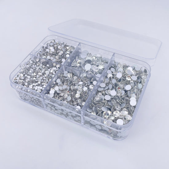 Our glass rhinestone kits include the 5 most popular sizes of our round glass rhinestones.