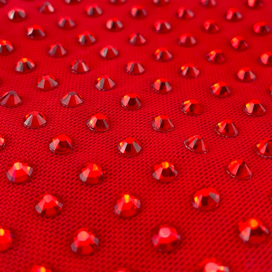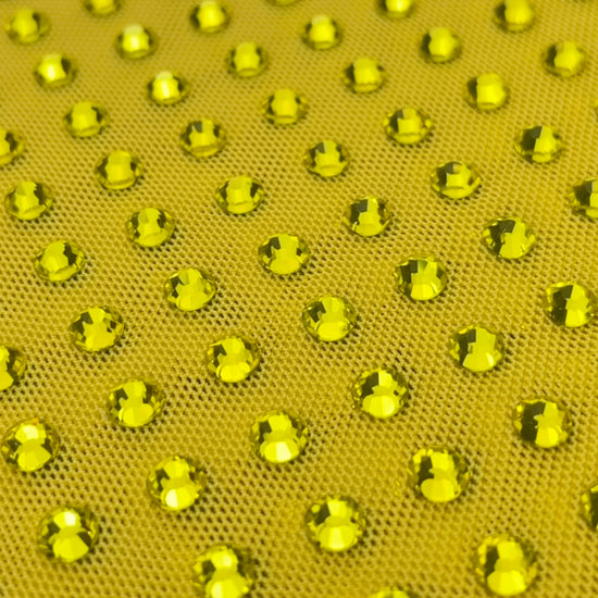 Our stretchy rhinestone panels are made with high-quality glass rhinestones.