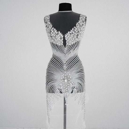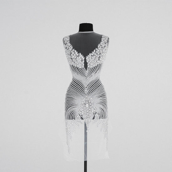 Beautiful beaded rhinestone bodice applique. This best-selling full-body applique is made with high-quality rhinestones in a gorgeous and lush design.