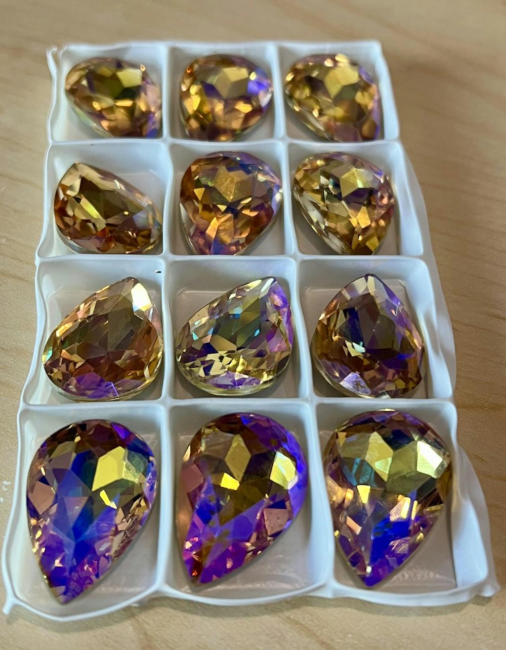 *Rhinestones are created from color lots. Slight differences in time, temperature, humidity, and other factors can result in different shades of the same color. We work closely with our manufacturers to keep our colors consistent. However, there can be slight color differences as each batch of the same color is made.