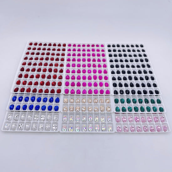 *Rhinestones are created from color lots. Slight differences in time, temperature, humidity, and other factors can result in different shades of the same color. We work closely with our manufacturers to keep our colors consistent. However, there can be slight color differences as each batch of the same color is made.