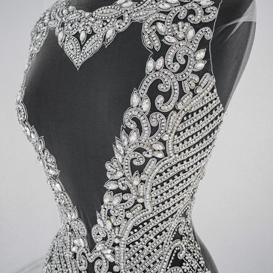 Beautiful beaded rhinestone bodice applique. This best-selling full-body applique is made with high-quality rhinestones in a gorgeous and lush design.