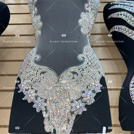 This beautiful applique is handmade with top-quality Rhinestone beads. The applique is attached to a mesh backing to make it super easy for DIY projects. This applique can be used in many different styles and positions. What we have shown in the photo is our favorite look.